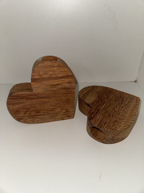par de coracao em madeira